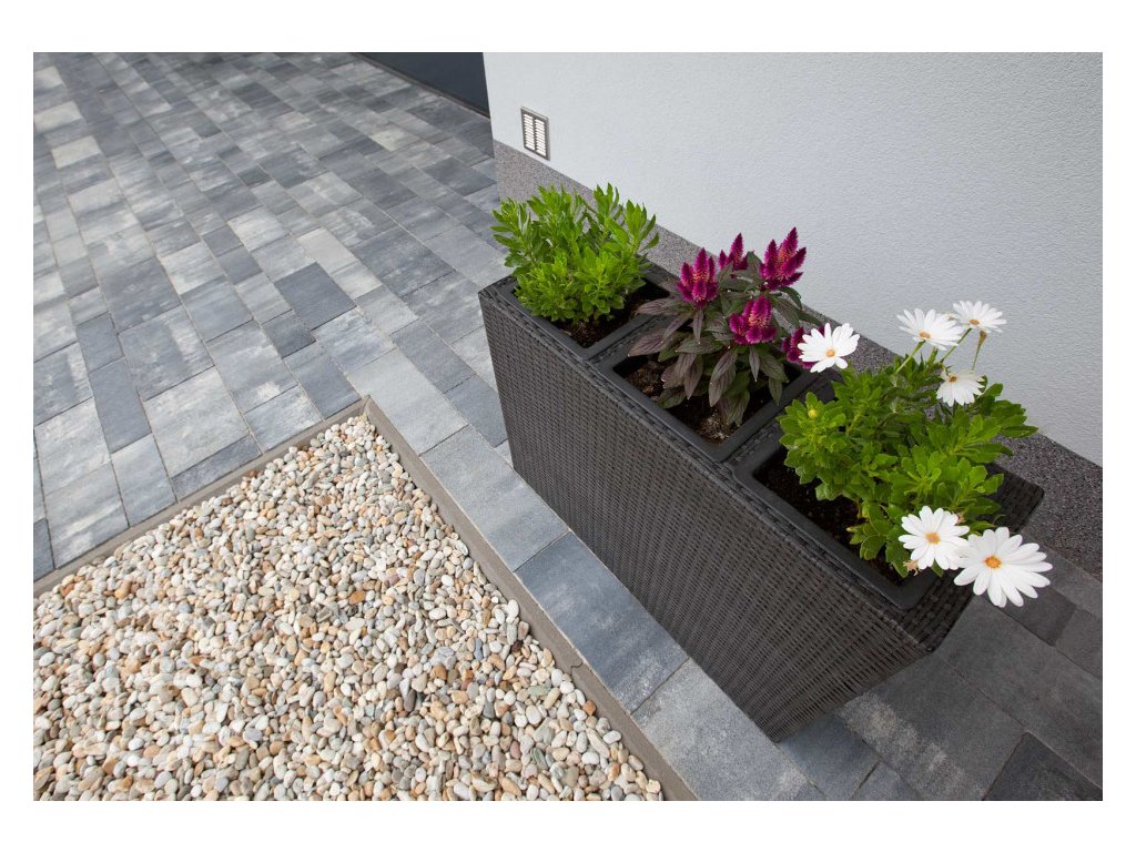 - nášlapová vrstva je při výrobě ošetřena speciální hydrofobizační přísadou, která přispívá k většímu utěsnění kapilár a omezuje tvorbu zelených výkvětů. Ošetřená dlažba je odolnější proti znečištění a lépe se udržuje.