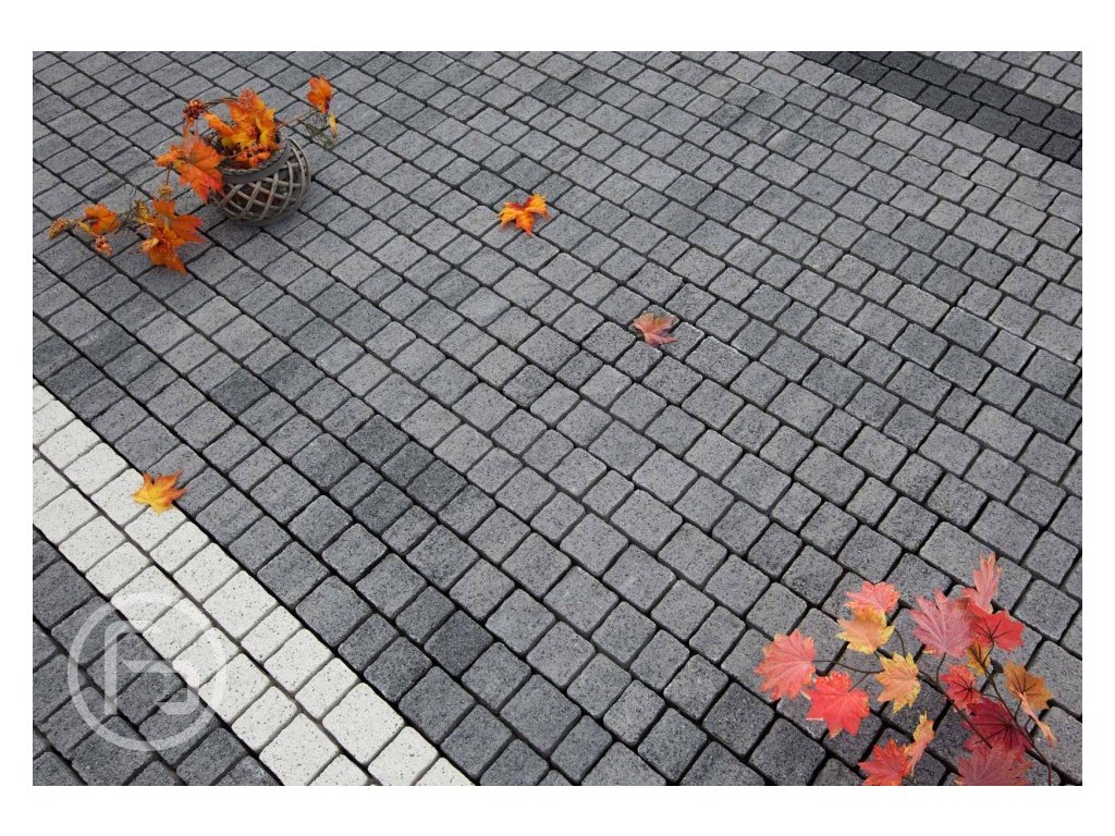 - nášlapová vrstva se při výrobě ošetřuje speciální hydrofobizační přísadou, která výrazně zlepšuje utěsnění kapilár a omezuje tvorbu výkvětů. Ošetřená dlažba je odolnější proti znečištění a snadno se udržuje.