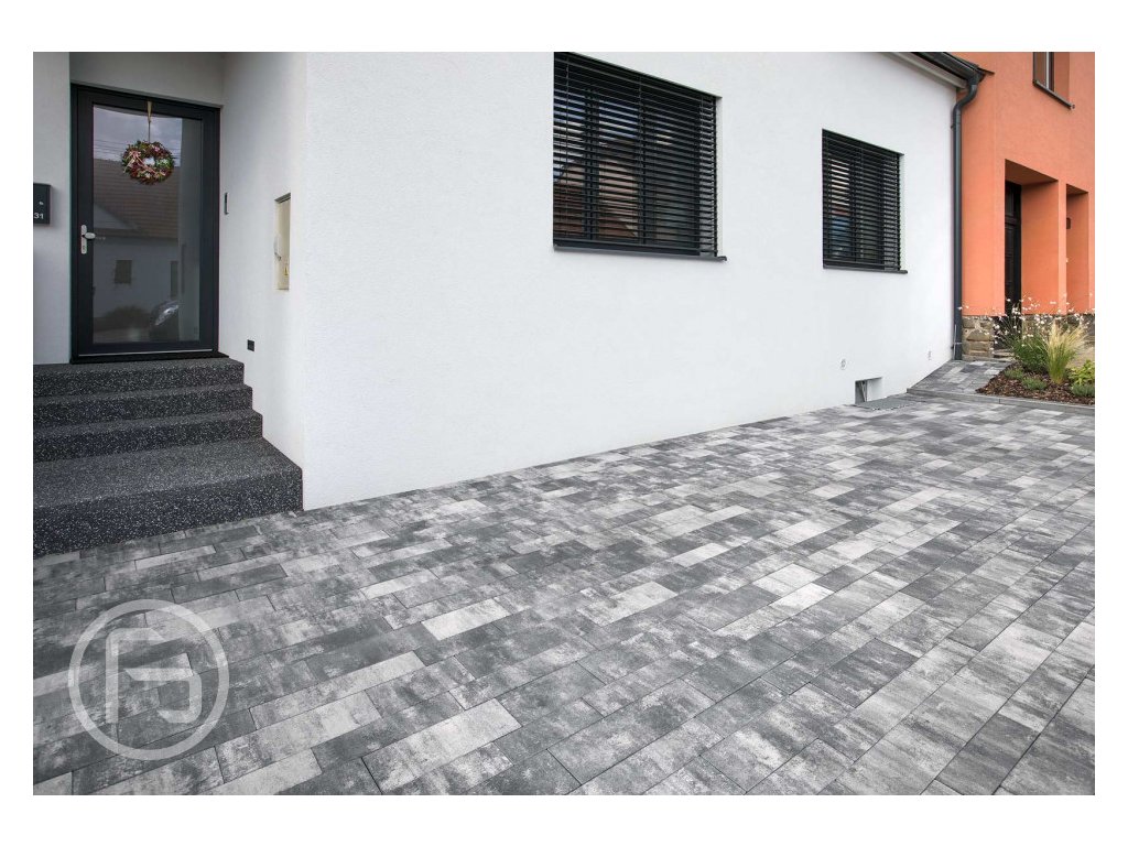 - nášlapová vrstva je již při výrobě ošetřena speciální hydrofobizační přísadou, která výrazně přispívá k utěsnění kapilár a omezuje tvorbu výkvětů. Takto ošetřená dlažba je odolnější proti znečištění a snadno se udržuje.