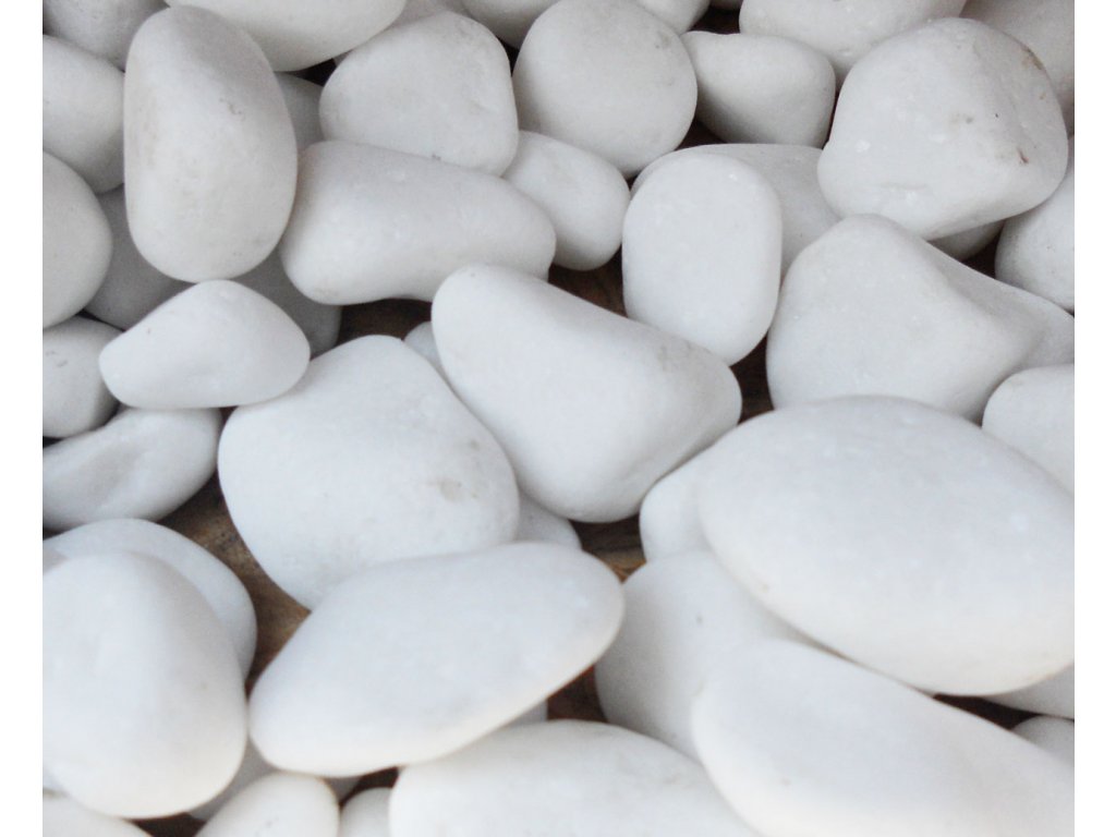 Oblázek mramor bílý 4-7 cm. Krásné dekorační bílé oblázky pro všestranné použití. Vhodné do exteriéru i interiéru. 1 balení vystačí na cca 0,4 m2. Mramor (krystalický vápenec) je hornina, která obsahuje více než 95 % kalcitu. Přimíšeny mohou být jílové hmoty, různé nerosty (grafit, limonit, hematit aj.) i organické látky, které původně bílý mramor zabarvují. V širším slova smyslu se slovem mramor označuje každý vápenec, který se dá leštit.