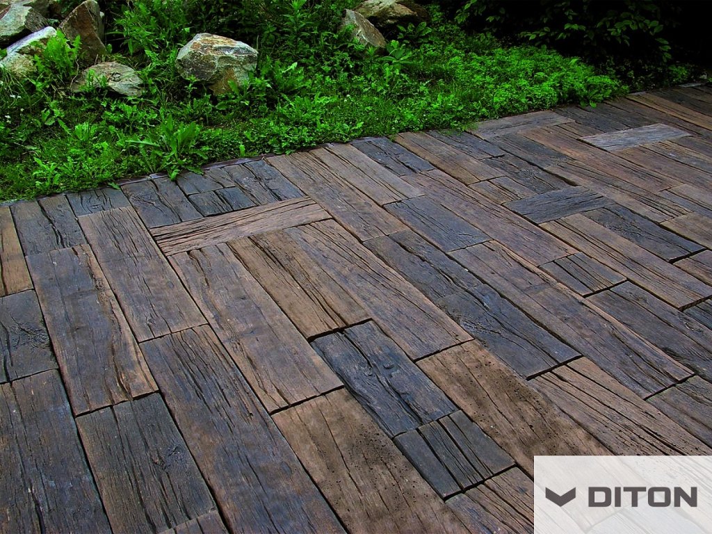 Prkno DUB D4 25x25x5cm- Diton - betonové lité prkno s dokonalou imitací dubového dřeva. Vyrábí se ve čtyřech délkách (250, 500, 750 a 1000 mm) a třech barvách (dub arktic, dub světlý a dub tmavý). Výška je 50 mm a šířka 250 mm. Imitovaná dřevěná prkna se vyrábí speciální technologií, kdy je celoprobarvený beton lit do forem, což dodává výrobku unikátní vzhled dřeva. Litá betonová prkna Diton s imitací dřeva se používají na pochozí komunikace, tedy na zpevněné plochy, chodníky, cestičky do vašich zahrad, kde tvoří dokonalý doplněk vegetačních ploch a samotného obydlí. Reliéfní povrch prkna nám zajišťuje dobrou odolnost proti smyku/skluzu a zároveň jemnější reliéf umožňuje příjemnou chůzi bosou nohou.