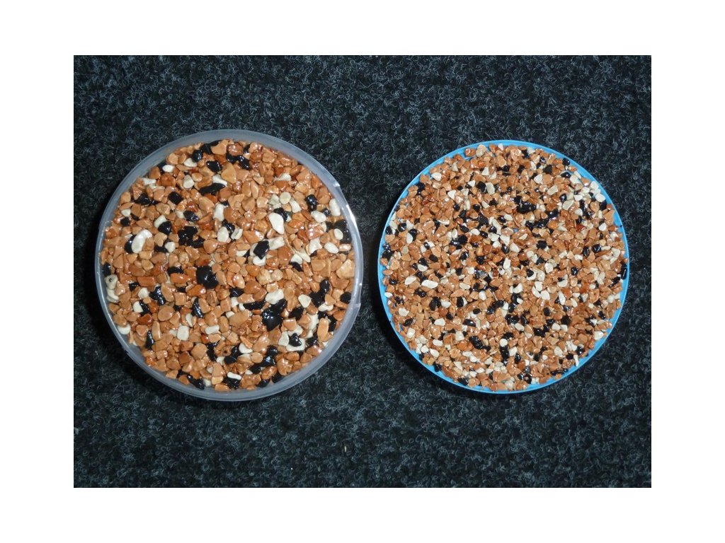 Cena je za 1m2 při doporučené tloušťce koberce 1,3cm. Prodej po setech 1,35m2 (kamínky + pryskyřice).