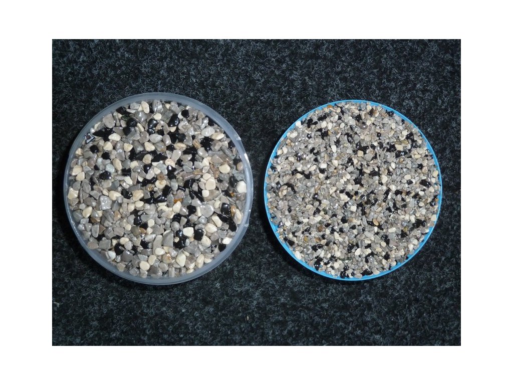 Kamenný koberec Vento 4-8 mm je krásný kamenný koberec z mramorových oblázků. Kvalitní německá pryskyřice jako pojivo je společná pro všechny naše kamenné koberce, díky tomu se kamenný koberec nedrolí, nežloutne a zachovává si vynikající vlastnosti. Cena za 1 m2 je komplet materiál (kamínky + pryskyřice) při doporučené tloušťce pro jednotlivé frakce kamenných koberců. Návod na penetraci a pokládku najdete v příloze.