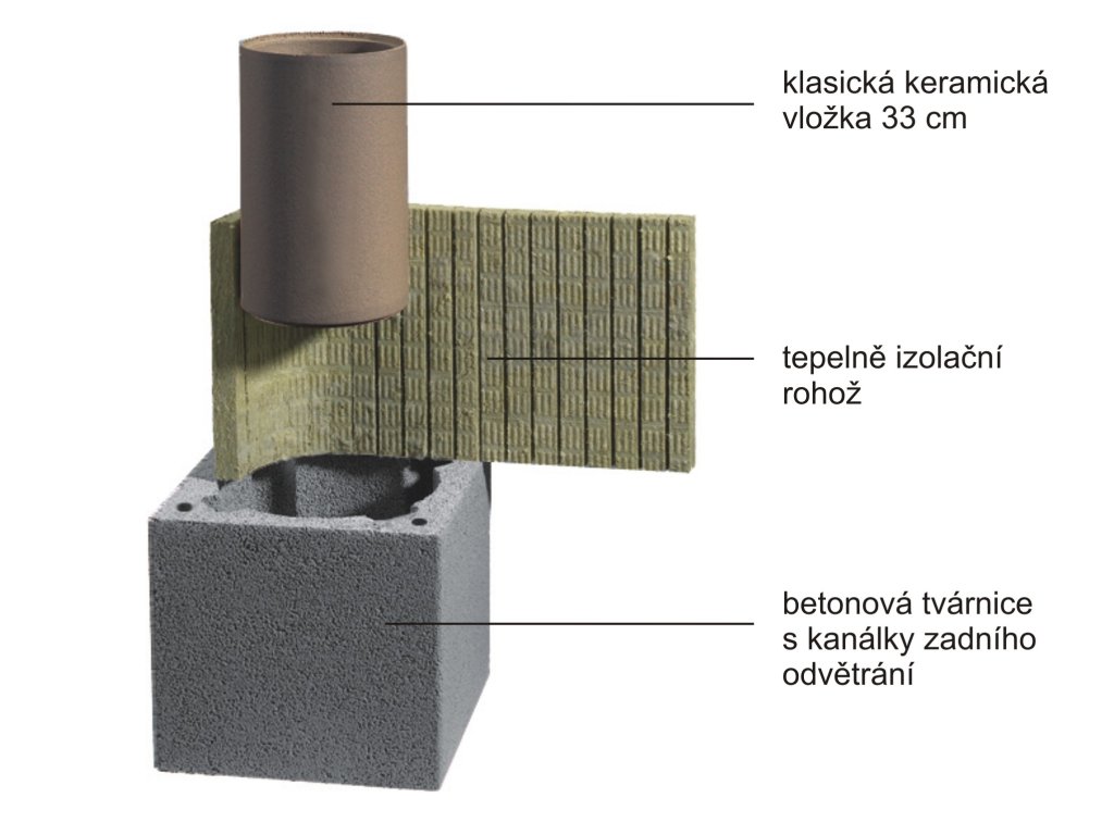 - třívrstvý komín - betonová tvárnice, tepelná izolace, keramická vložka z technické keramiky