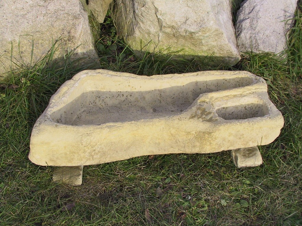 Koryto nepravidelné - je určeno pro venkovní použití v zahradách, na terasách, ale i na malých balkonech. Jedná se o repliku koryta z pískovce, který je vyroben z umělého kamene nevyžadujícího údržbu. Repliky koryt mají standardně pískově žlutou barvu, která se vlivem povětrnostních podmínek mění a získává vysoce hodnocenou patinu. Vzhledem k tomu, že se jedná o ruční výrobu, můžou být mezi jednotlivými koryty jemné barevné rozdíly.