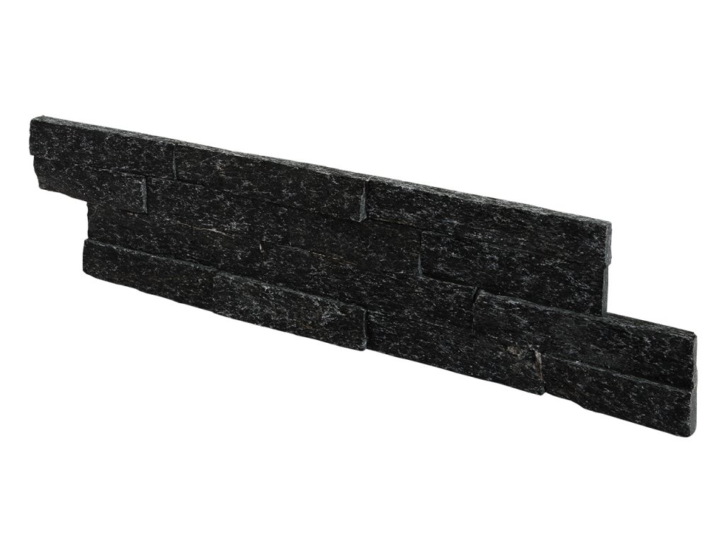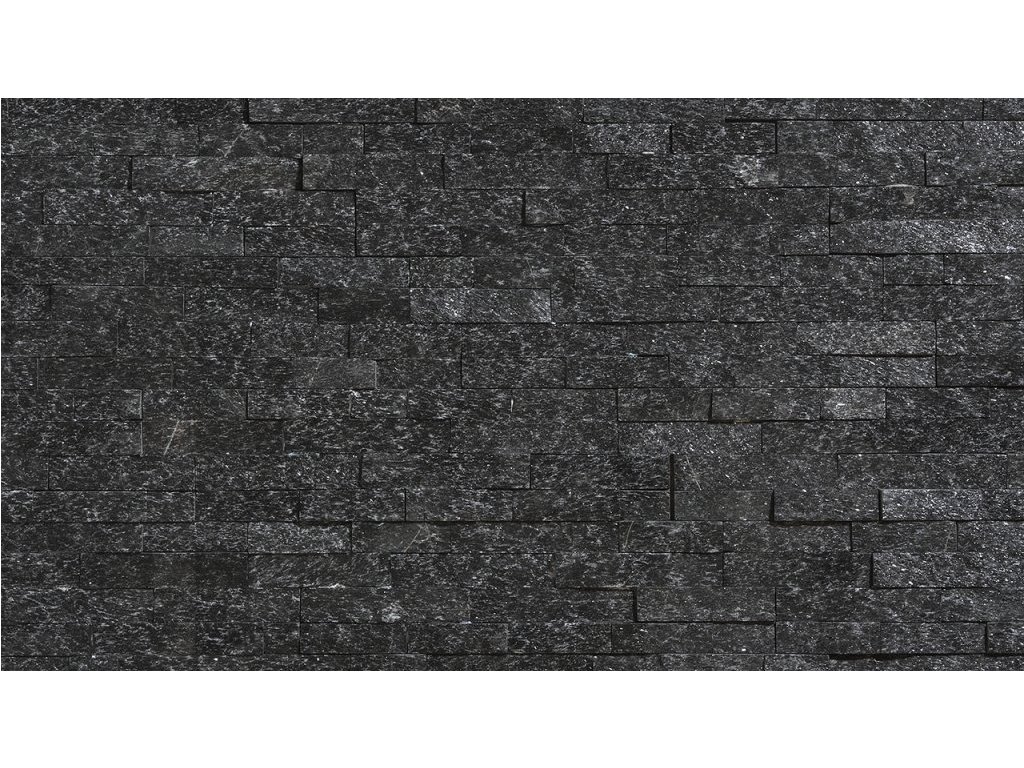 NERO je tmavě šedý lesklý obklad z kamene, který je vyroben z břidlicových pásků obsahující slídu. Drobná a jemná struktura jednotlivých pásků je vhodná spíše do interiéru jako dekorativní doplněk k obložení stěn, krbů, sloupků.