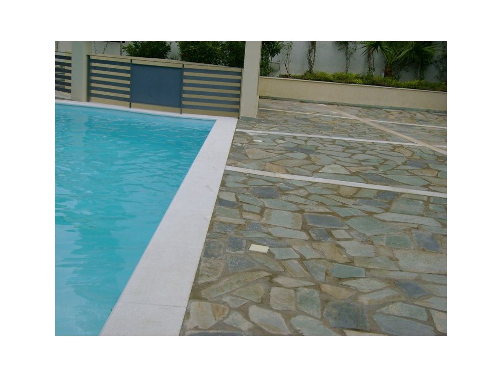 Kvarcit řecký šedý obklad - dlažba. Kvarcit je metamorfovaná hornina regionálního vzniku vyznačující se jemnou až středně hrubou zrnitostí. V barevných variacích převládá bílá až šedá. Na první pohled je možné si kvarcit splést s mramorem.