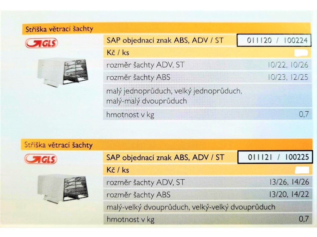 V objednávce prosím upřesněte kód vybrané stříšky podle typu komínu a rozměru (v cm)