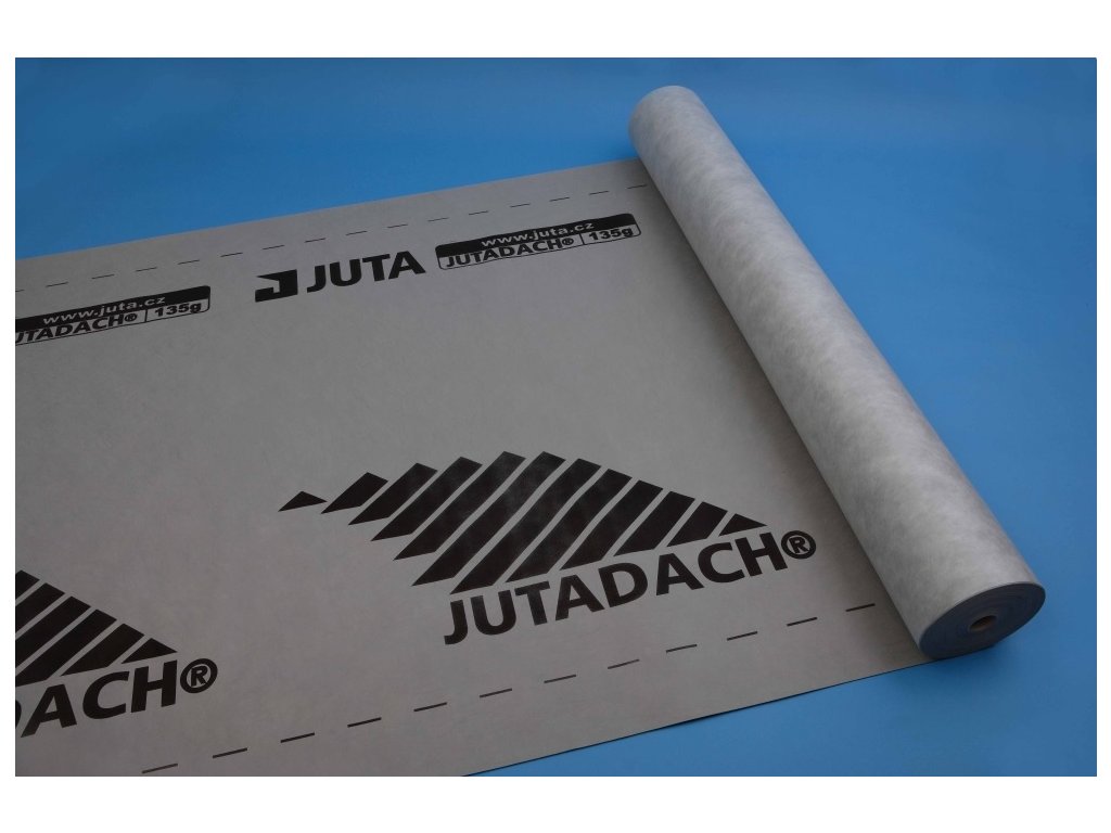 JUTADACH 135 - difuzní střešní fólie. Vysoce difúzní podstřešní membrána sloužící k ochraně podkrovních prostor a tepelných izolací. Materiál je třívrstvý kontaktní určený na bedněné i nebedněné šikmé střešní konstrukce. Bližší informace naleznete v aktuálním Aplikačním manuálu JUTA. Prodej na ucelená balení 75m2.