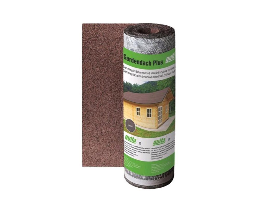 Asfaltový střešní pás Gardendach Plus - jedná se o plnohodnotnou střešní krytinu. Gardendach Plus je samolepící pás z modifikovaného asfaltu s vložkou z pevného polyesterového rouna a s barevným hrubozrnným posypem. Je určen jako vrchní vrstva nenáročných střešních konstrukcí jako jsou např.altány, pergoly, různé přístřešky atd. Jeho největší výhodou je snadná instalace bez použití plamene. Gardendach Plus je vhodný pro stříšky od sklonu 5° a výše.