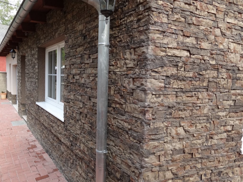 Obklady z lámaného mramoru se skládají z modulů pravidelných tvarů těsně vedle sebe bez nutnosti spárování. Výsledný vzhled působí autentickým dojmem štípaného mramoru. Velkou předností je trvanlivost vzhledu, zejména stálobarevnost, které je dosaženo použitím nejkvalitnějších surovin v precizním technologickém procesu výroby. K údržbě v exteriéru stačí jakýkoli umělý kámen ošetřit tlakovým čističem, v interiérech se výrazná struktura od prachu nejlépe čistí vysavačem s kartáčovým nástavcem.