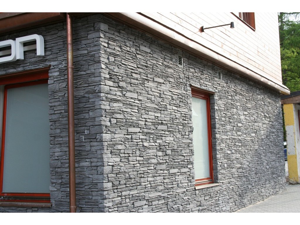 Obklad umělý kámen Shale se strukturou štípaného kamene v šedém provedení. Tento obklad je ideálním materiálem pro použití v interiérech, jeho světlá barva rozzáří každý obývací pokoj či kuchyň. Použití v exteriérech je další možností uplatnění tohoto výrobku. Tento výrobek má velice přijatelnou cenu. Vzhledem k modulové skladbě montáž obkladu se provádí bez spárování. Barevna stálost v řádu desítek let je dosažená použitím nejkvalitnějších surovin a striktním dodržováním technologií výroby.