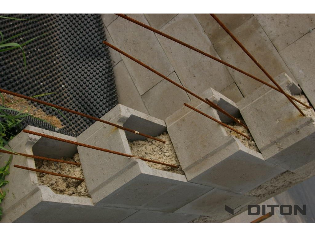 Ztracené bednění Diton je určeno pro betonování bez použití klasického bednění. Ze ztraceného bednění lze vytvořit betonové či železobetonové konstrukce o šířce 15, 20, 25, 30, 40 a 50 cm.